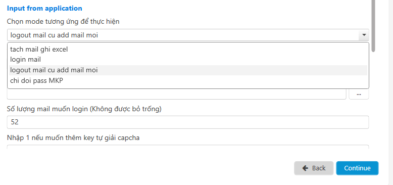 Tự động tách mail, pass, mail khôi phục từ file txt mua trên MMO Tự động login gmail, đổi pass, đổi email khôi phục Login mail mới, xoá mail cũ đã die