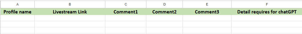 + Cột F (Detail requires for ChatGPT): mô tả chi tiết nội dung muốn comment cho ChatGPT).