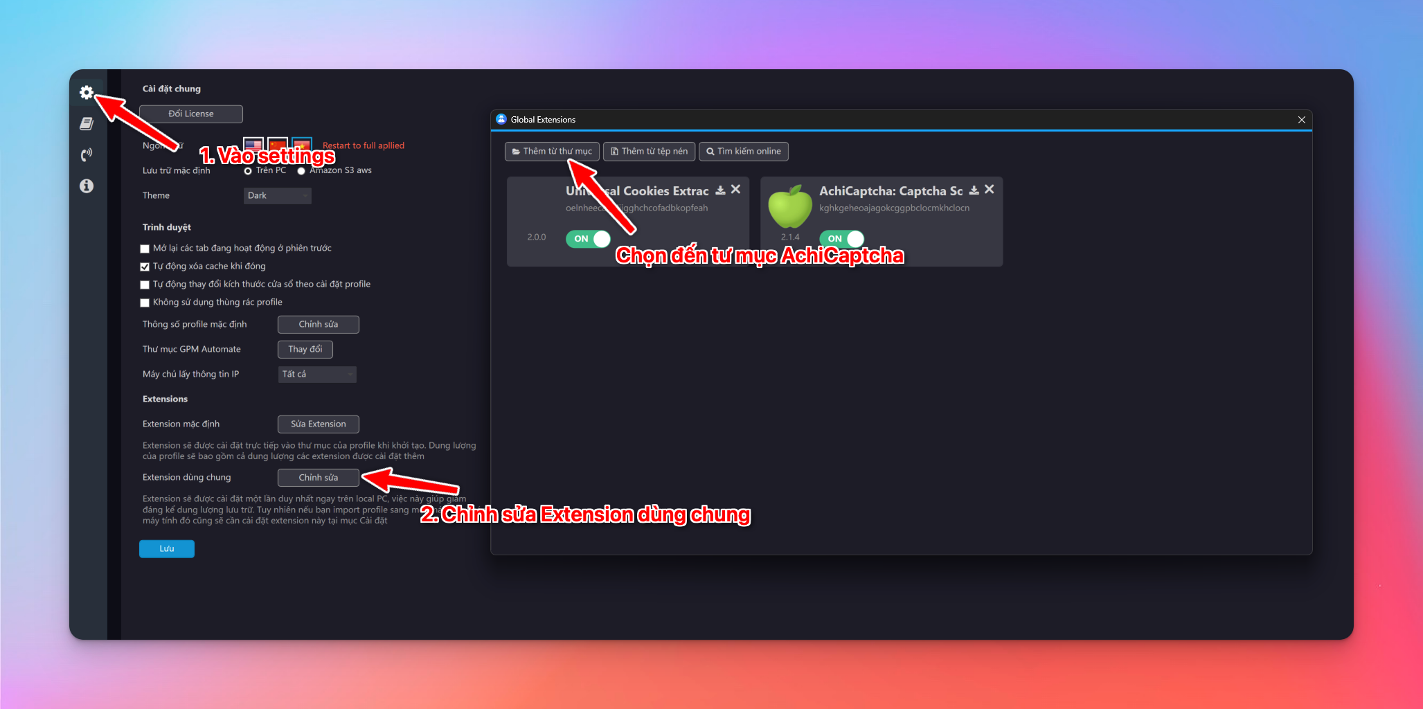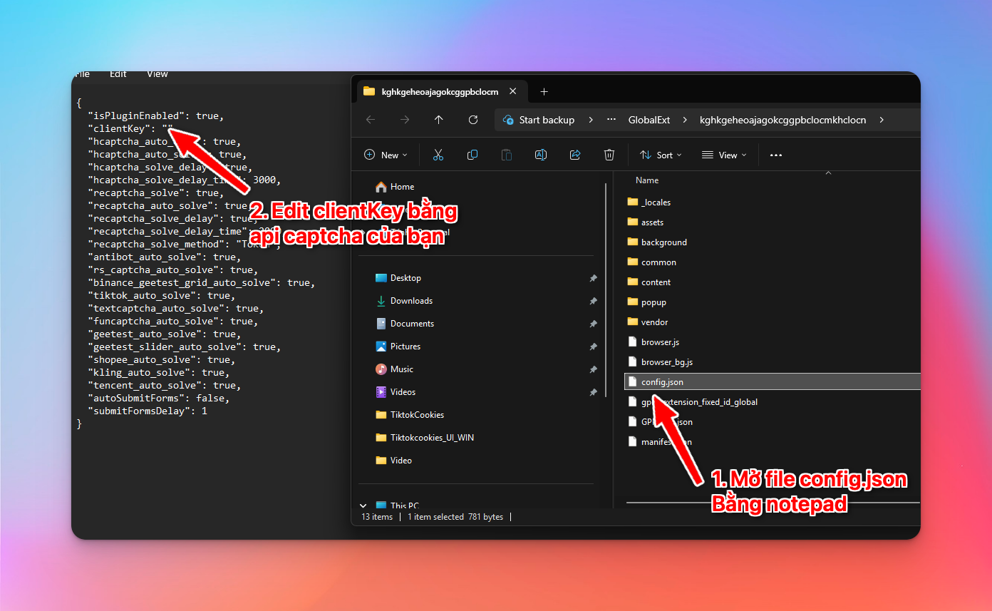 Thêm apikey của achicaptcha vào file config.json trong folder vừa giải nén