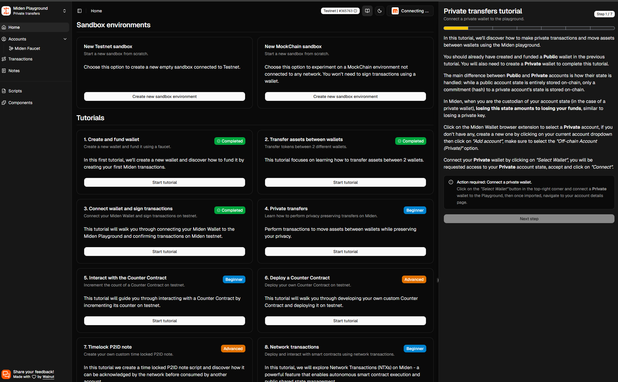Import Miden Wallet Và Làm Testnet Miden từ A - Z bao gồm: Create, Transfer, Connect Wallet & Sign Transactions, Interact,Deploy a Counter Contract.... sẽ cập nhật nhiệm vụ liên tục