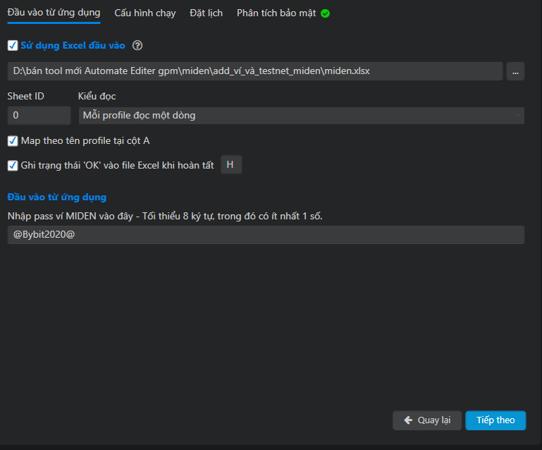 Tạo và import Miden Wallet hàng loạt | xuất 12 ký tự khôi phục và địa chỉ ví Miden ra file Excel
