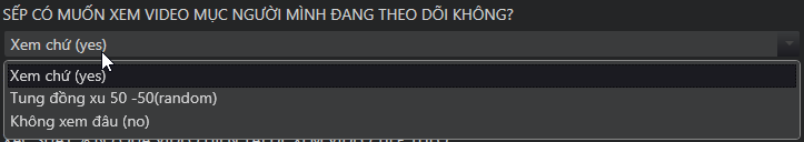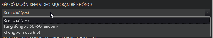 XEM | RANDOM XEM HOẶC KHÔNG | KHÔNG XEM các mục Video: