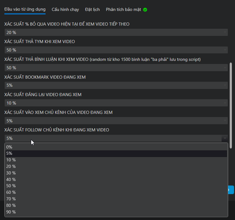 Script nuôi Tiktok tuỳ chỉnh chế độ linh hoạt