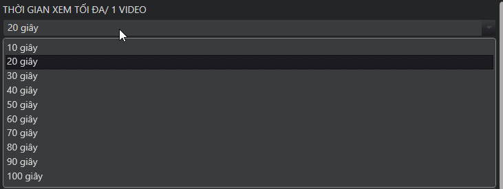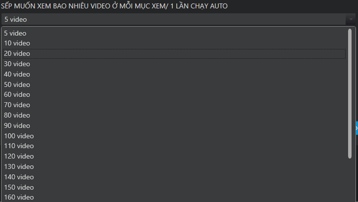 Số lượng video sẽ xem ơ mỗi mục/ 1 lần chạy auto: