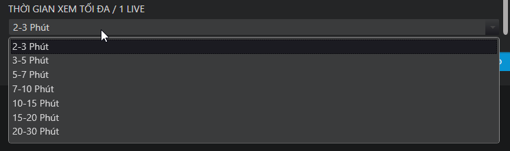 thời gian tối đa xem một live: