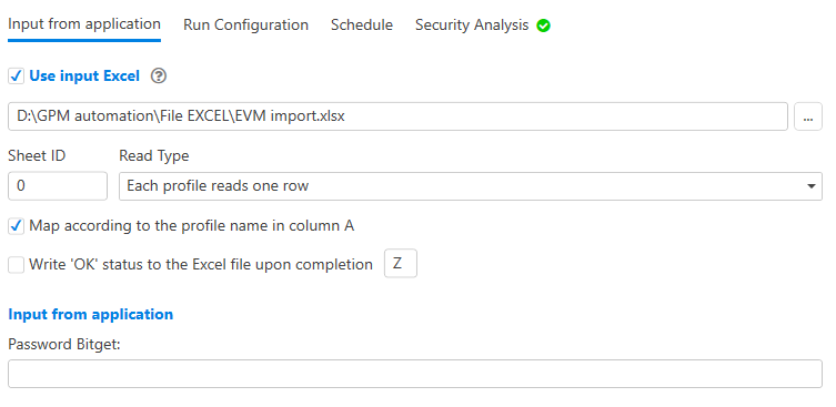 - Chọn file Excel đầu vào ứng dụng, chọn map profile theo cột A + chế độ mỗi profile đọc 1 dòng.