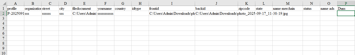 ✅Tạo file excel có định dạng như hình input vào: